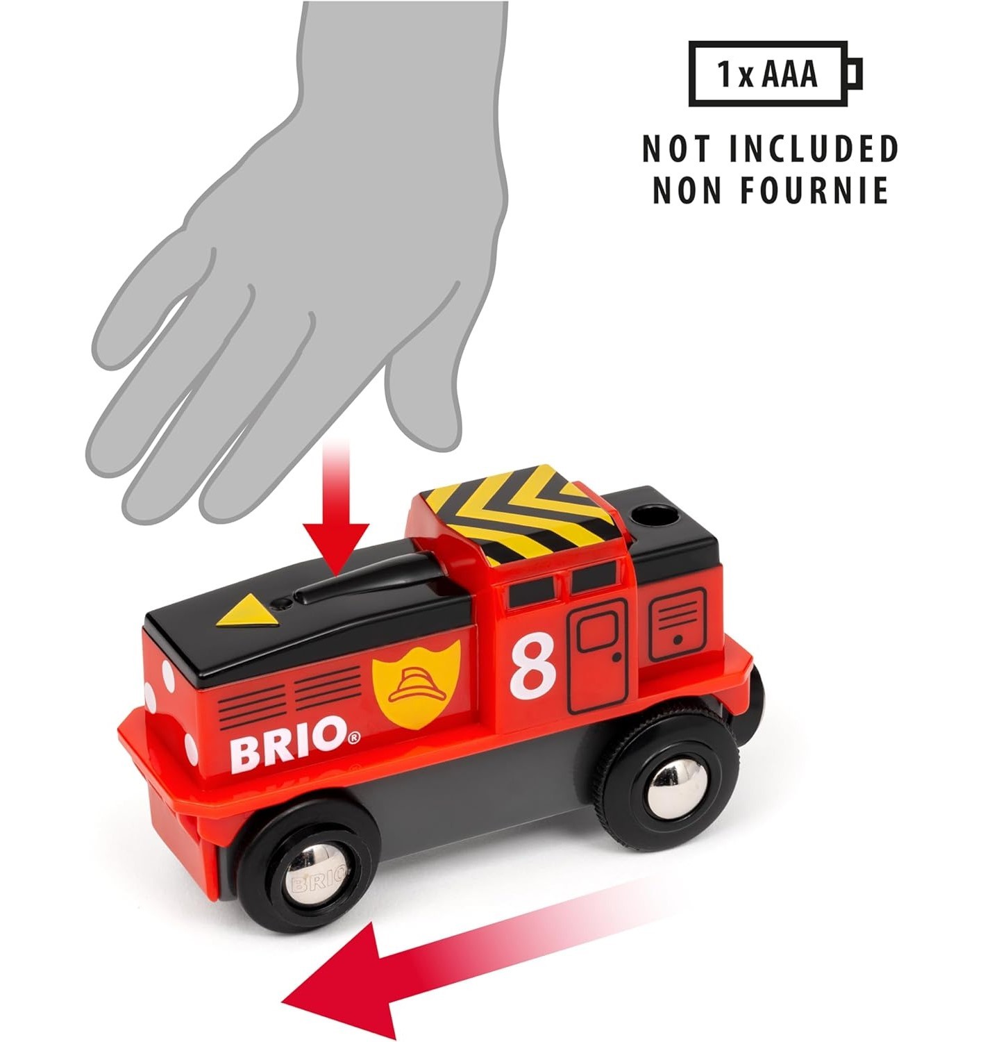 This set comes with a battery powered train, a carriage carrying water, a helicopter with removable pilot, a double suspension bridge, 4 fire stands, sign, 28 curves, 2 straights, 32 raised sections of various sizes.