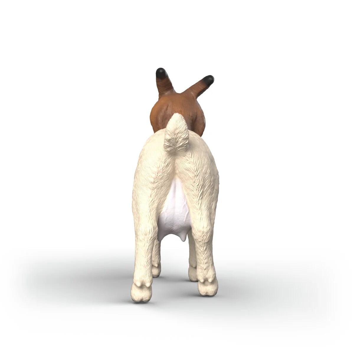 A chunky goat, with large sweeping horns and distinct markings. Did you know that Boer Goats can have 4 teats rather than just 2 which is normal for goats.