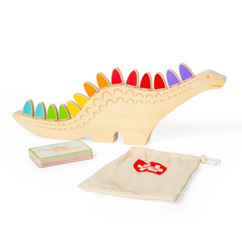 This long friendly wooden dinosaur needs its scales putting back in place in the correct order, pick a card and match the scale colour or pattern to those on the card. The set comes with a draw string bag to keep the cards and scales together.