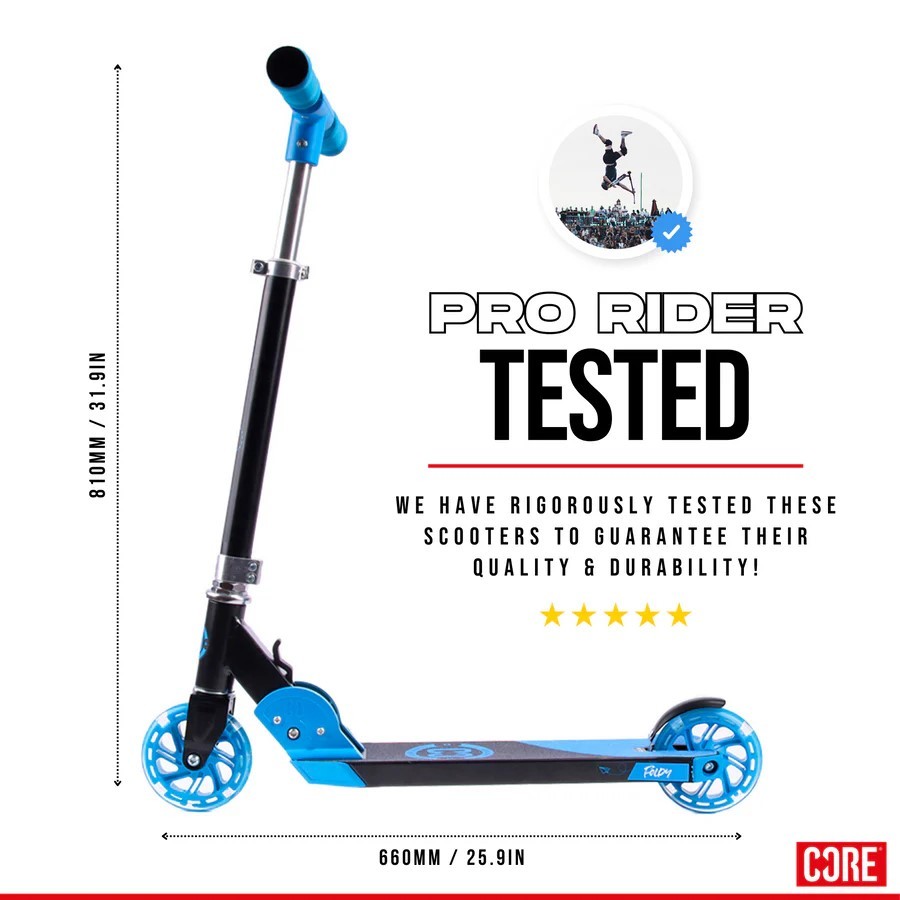 About the Core Kids Foldy Kick Trick Scooter, 5 - 10 years BLUE