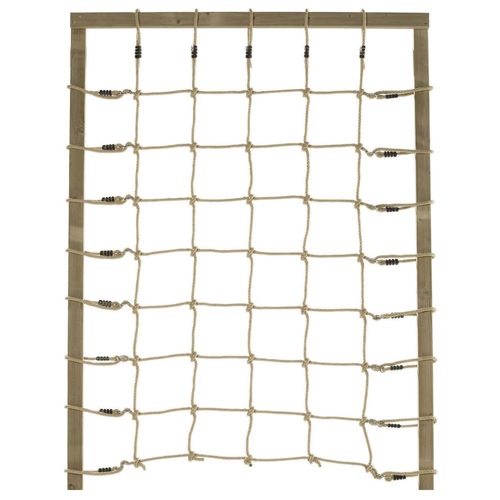 A large, strong Poly Hemp climbing net with loops to secure it in place. The Poly Hemp rope looks and feels natural and soft on the hands but is actually synthetic so it wont rot but it also wont splinter.