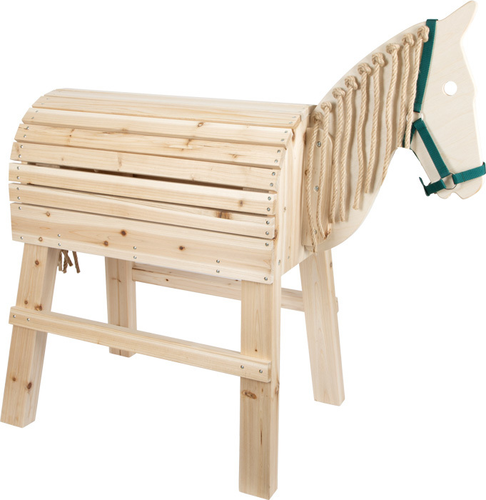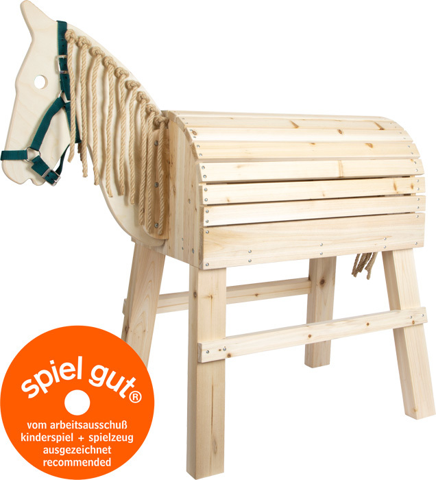 A good wooden horse must be more than just ridable; it should also offer other play possibilities which activate role-playing and awake kids' imaginations. Extras such as a tail and mane to brush and a head collar all help. In addition, a horse should be solid and stable so that it can withstand the children's acrobatics. It should also be possible for children to get on the horse without help from their parents. And since riding outside is the most fun, a wooden horse should be weather-resistant, too.