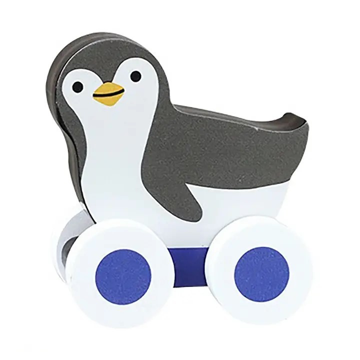 A chunky wooden Sliding Penguin, for you to push along. This brightly painted push along is a perfect little gift or stocking filler.