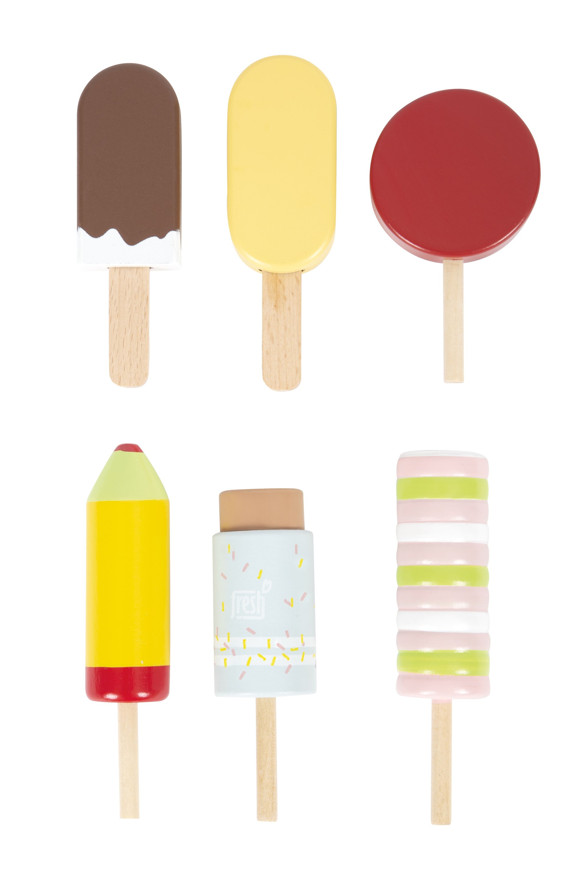 You have 6 ices to choose from, all look realistic and very tasty, they sit in a wooden box for serving and storage.