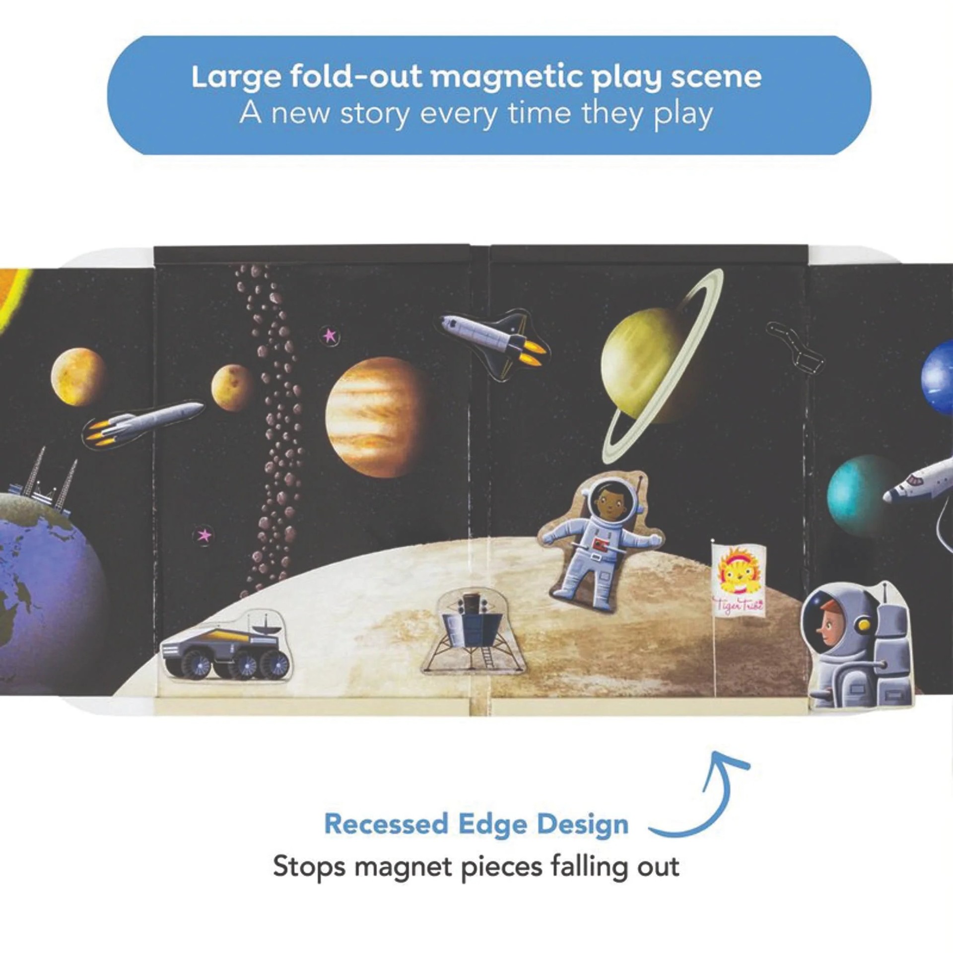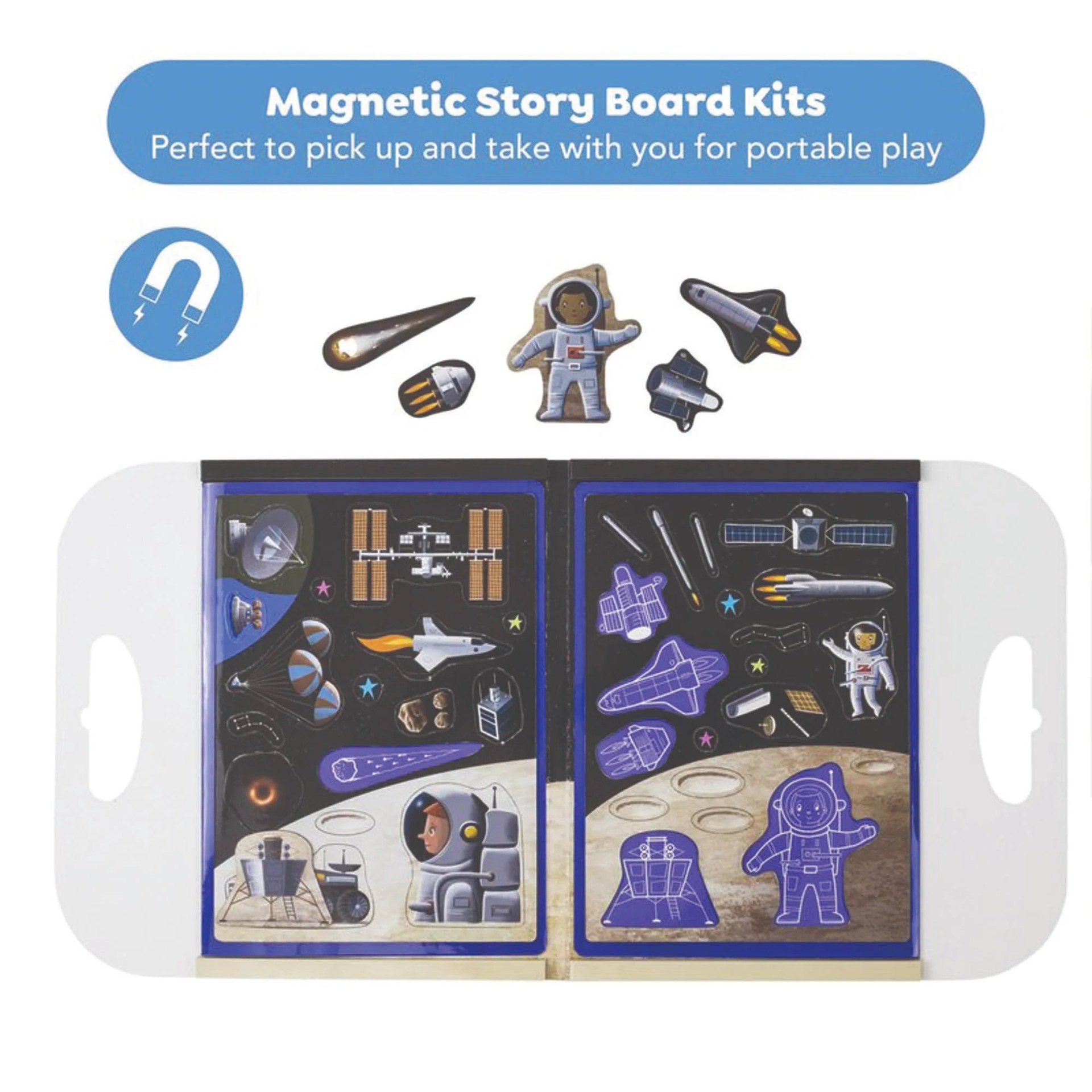 This fold out magnetic case has a Space scene with a cratered moon, which you add magnetic Planets, Astronauts, Space Rockets, Vehicles and other space artefacts to create stories and scenes.