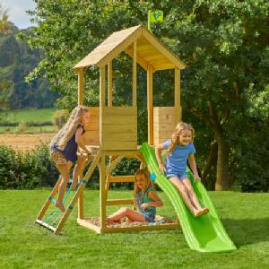 About the TP Treehouse Wooden Play Tower with wavy slide
